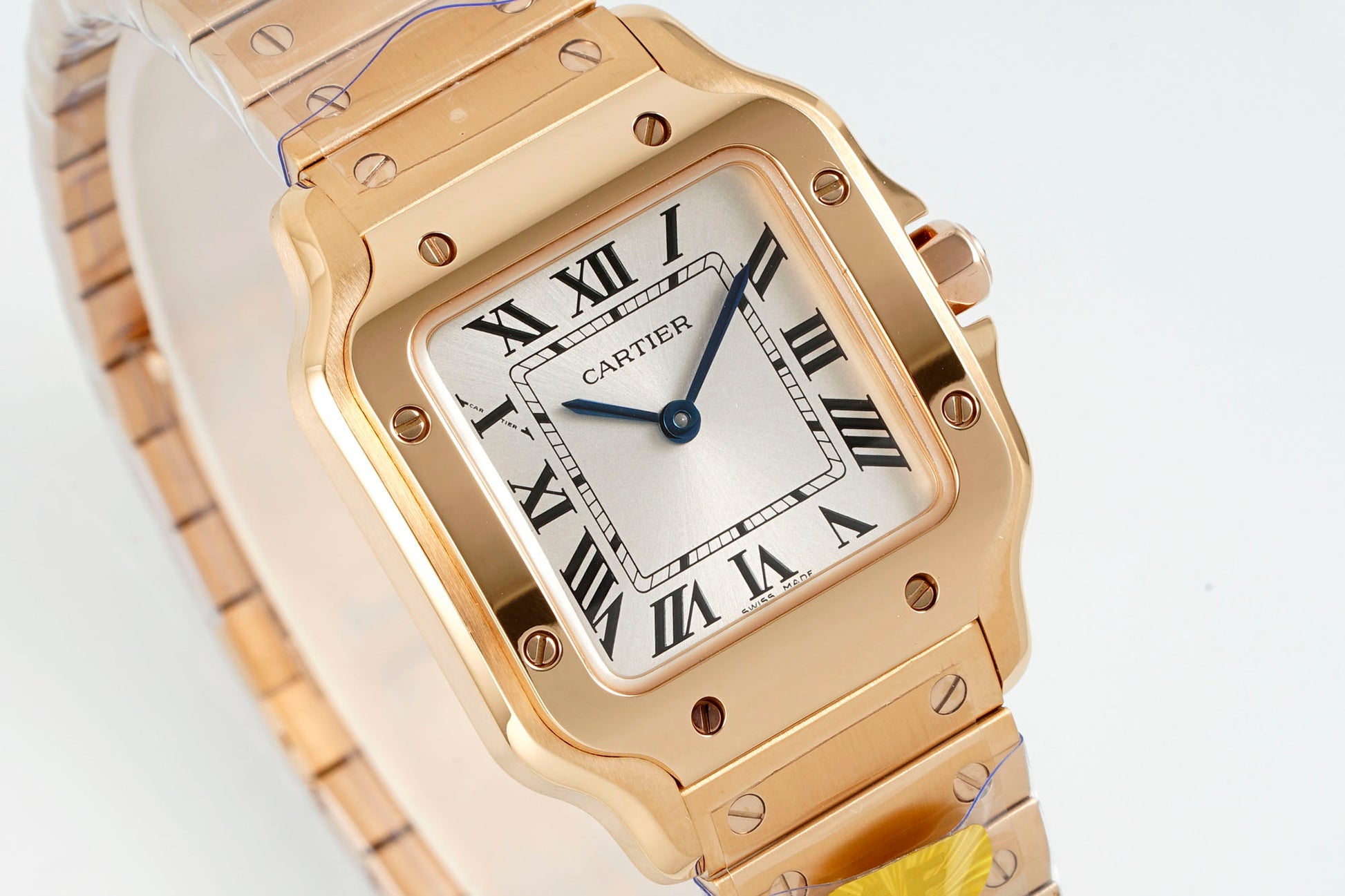 Cartier Santos de Cartier Medium Model – 18K Rose Gold with Silvered Opaline Dial