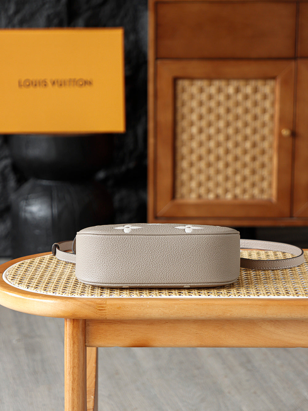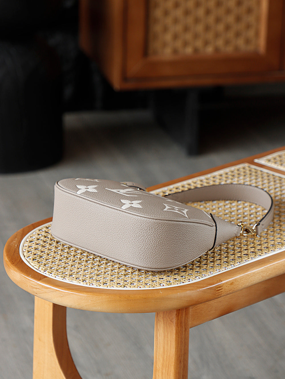 The Louis Vuitton Bagatelle in beige/crème Monogram Empreinte leather offers a soft, elegant silhouette with an embossed LV pattern. Its neutral tone, refined craftsmanship, and versatile styling make it a perfect everyday luxury handbag.