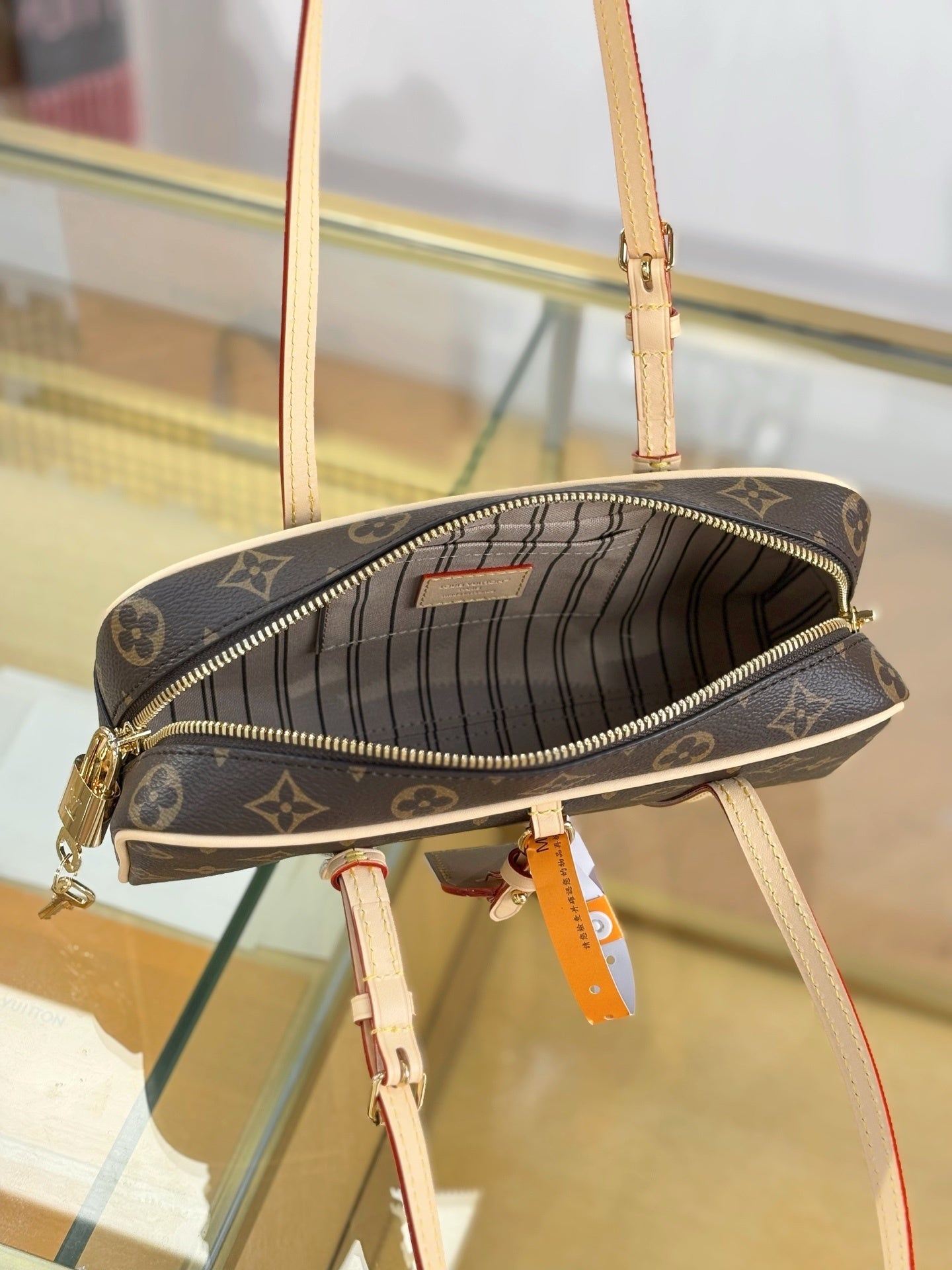 Louis Vuitton Hang On Handbag – Classic Monogram Canvas with Natural Cowhide Leather Trim
