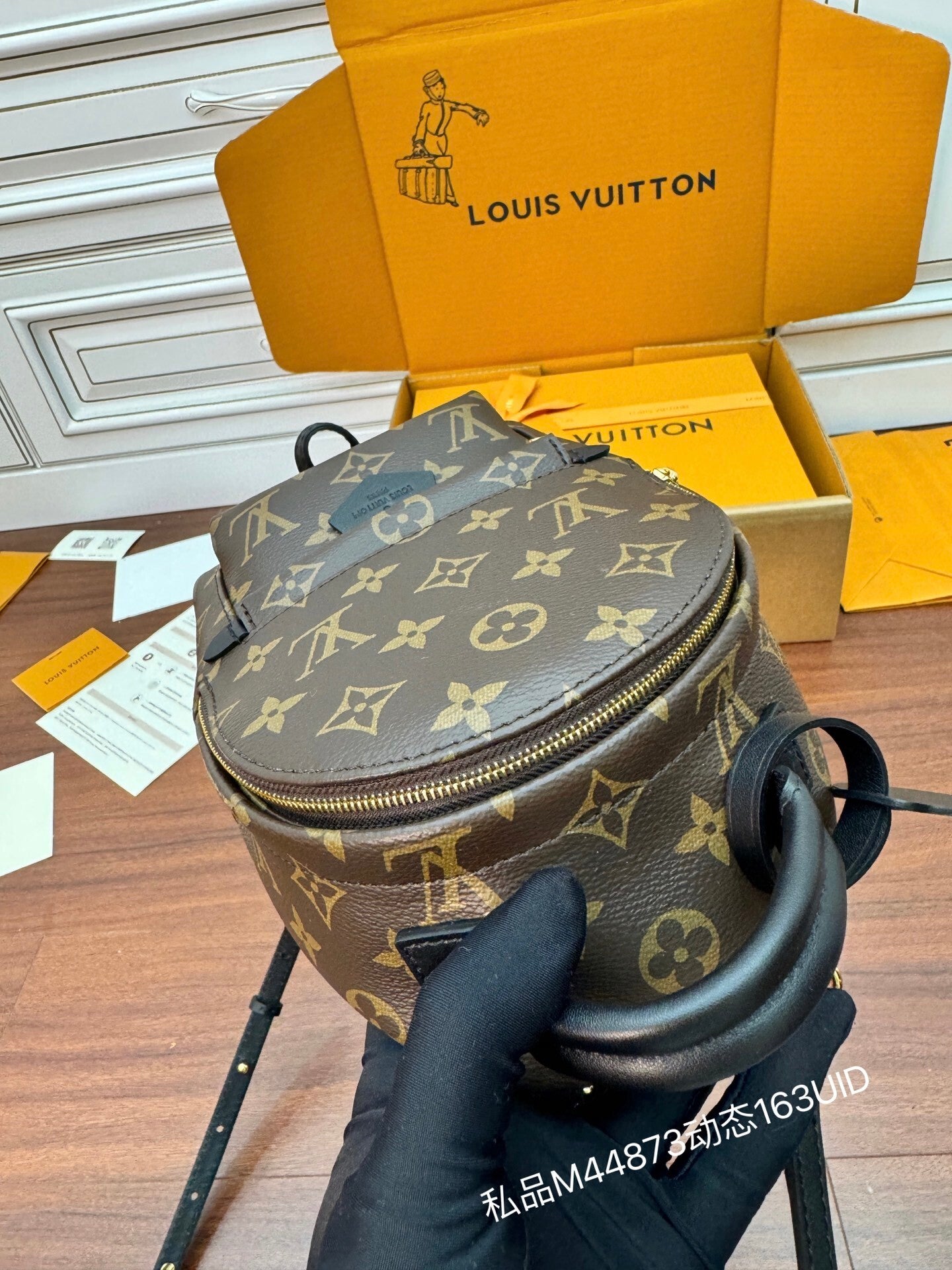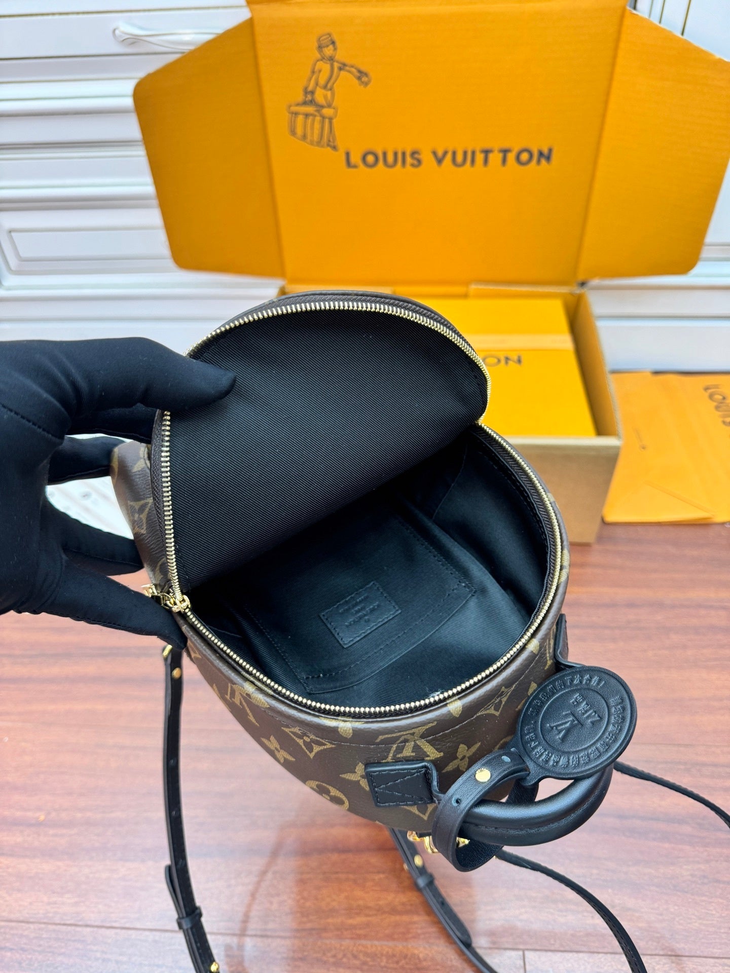 The Louis Vuitton Mini Palm Springs Backpack is a compact, stylish everyday bag crafted in the iconic Monogram canvas. Lightweight, versatile, and modern, it features a sporty-chic silhouette with premium leather trim, gold-tone hardware, and comfortable adjustable straps.