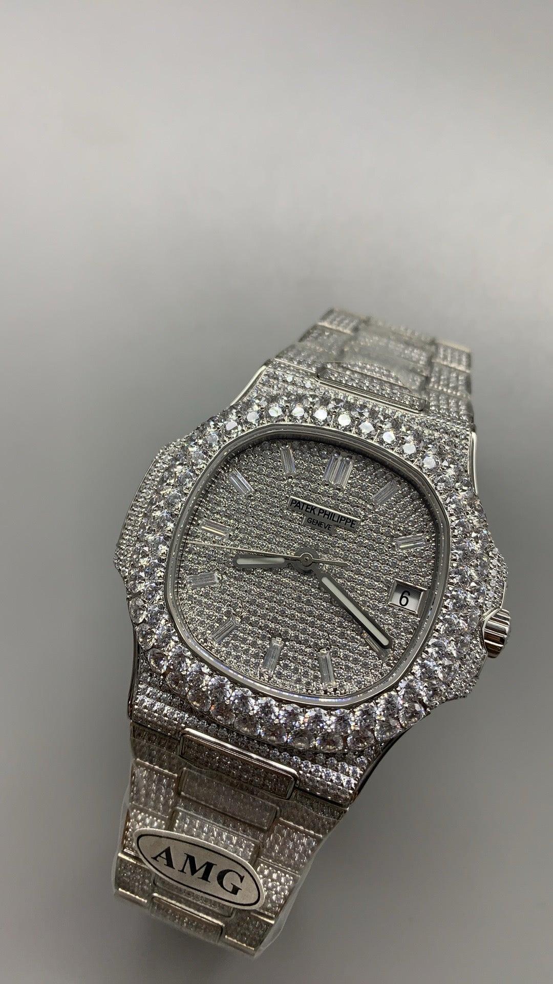 The Patek Philippe Nautilus reference 5719/1G is an extraordinary high-jewelry timepiece crafted in white gold and fully set with brilliant-cut diamonds. Featuring a diamond-paved dial, bezel, and integrated bracelet, this ultra-luxurious Nautilus combines iconic sporty design with exceptional gem-setting artistry and elite Swiss watchmaking.