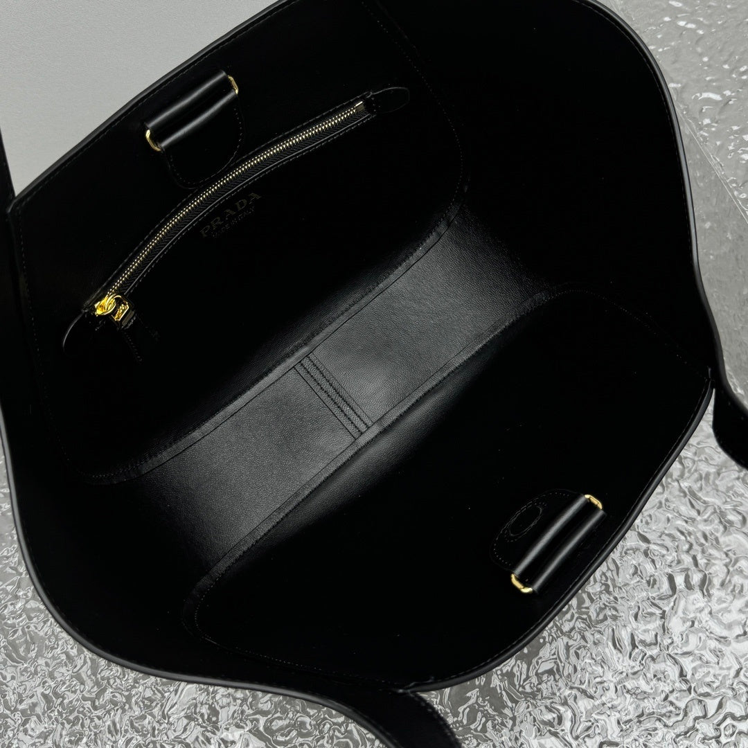 Elevate your everyday style with the Prada medium leather tote bag in black, crafted from premium leather and designed for timeless elegance, functionality, and modern luxury.