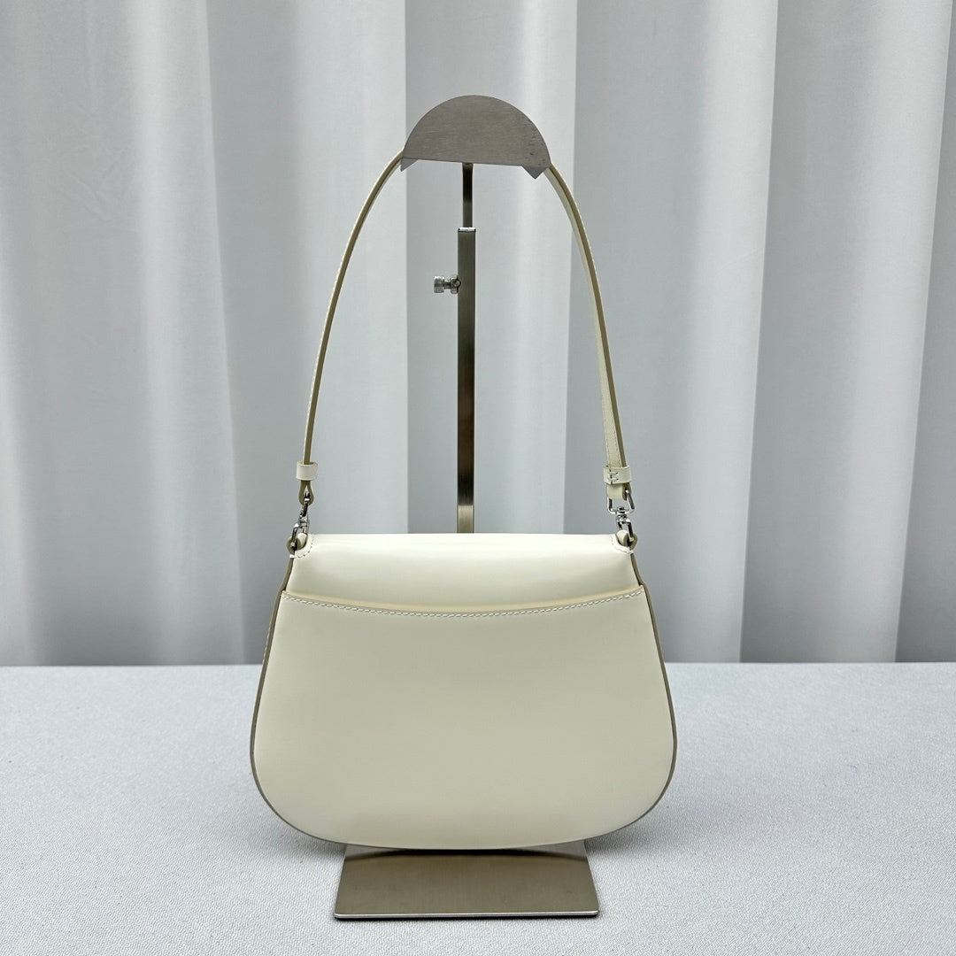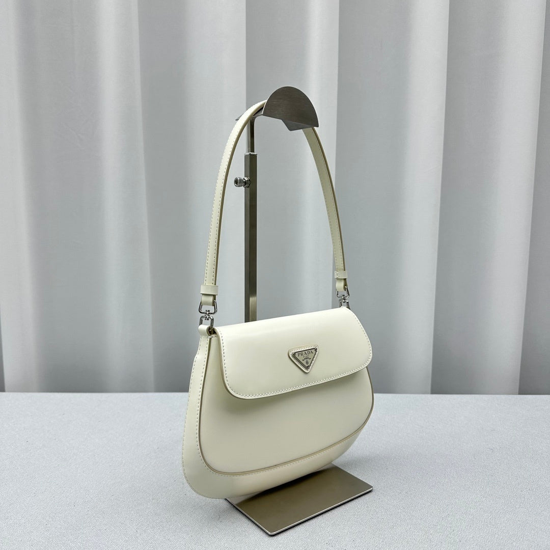 Refined and modern, the Prada Cleo flap-front brushed leather shoulder bag showcases the brand’s iconic curved silhouette with a sleek brushed leather finish. Designed for effortless elegance, it features a structured flap closure and timeless Prada craftsmanship.